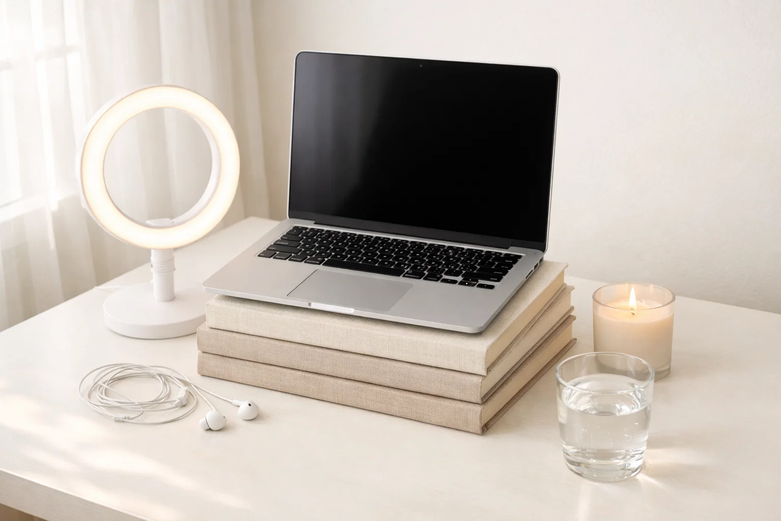 Sit facing a window so light falls onto your table and hands. If the call is in the evening, place a warm lamp behind your screen.